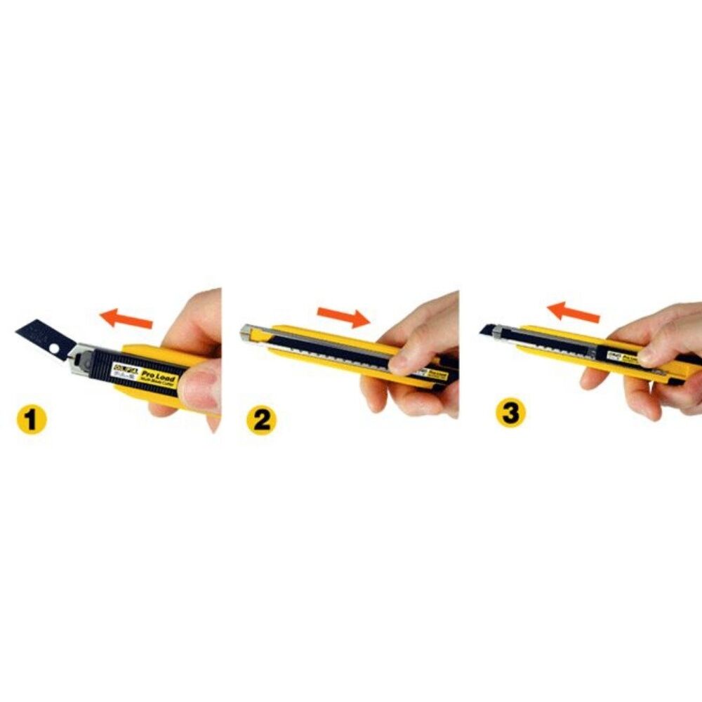 סכין Olfa PA-2 Pro Load החדשנית כוללת ידית חלקה שמחזיקה 5 להבים הנטענים אוטומטית אחד אחרי השני. אין צורך להאט יותר עבור החלפת להב. 5 הלהבים יעניקו לך 65 קצוות חיתוך לפני שהגיע הזמן לטעינה מחדש!